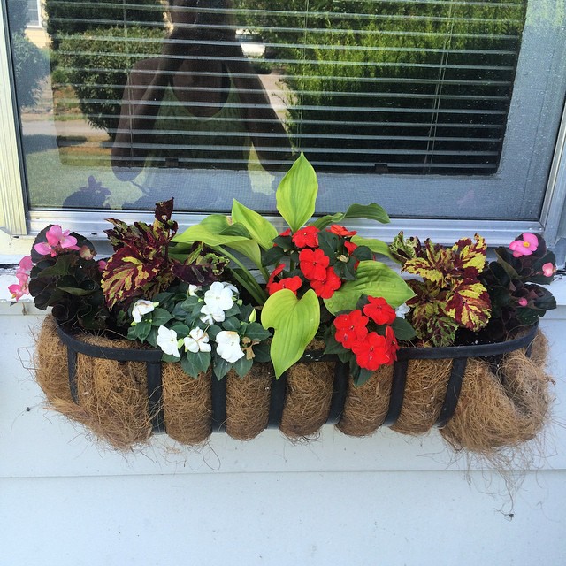 I also wanted low maintenance on my window boxes this year. So I did some research on shade loving window plants and went to town. I really wanted to achieve that “Charleston-style” window box, where things are just spilling over the sides. While I didn’t quite achieve that this year, I am tickled with the results I got for my first attempt. They’re full and lush with pops of color, which is just what I wanted in the end.