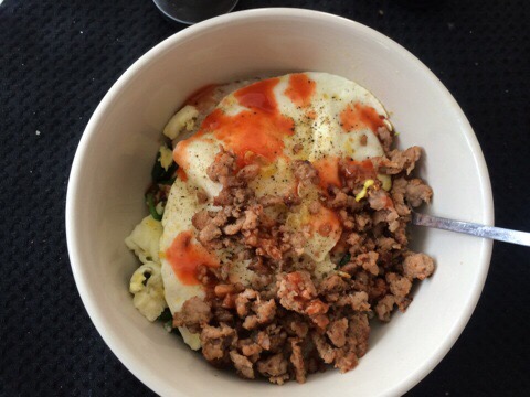 I eat this probably 3-4 days a week. It is so delish, and you can change the meat out to bacon or ham if you’re so inclined.