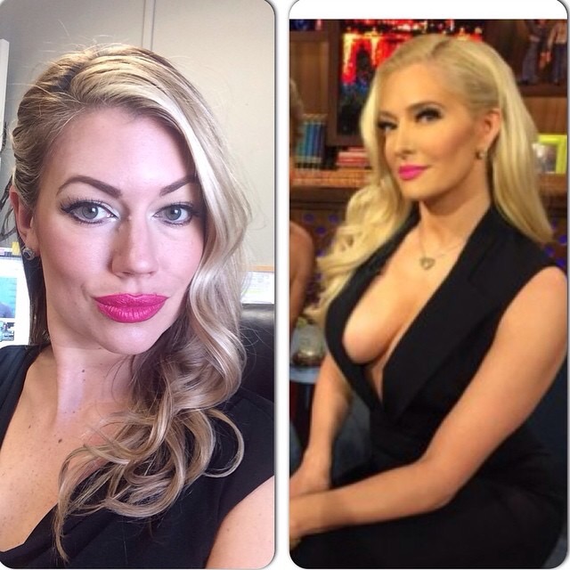 The other day at Sephora I cashed in my points for a mini-lipstick from Bite Beauty (shade is “Radish.”). It was the most fierce shade of fuchsia and, while I was drawn to it, I couldn’t help but think “I am never going to be able to wear this.” Well, like a sign from the gay makeup gods above, I was watching “Watch What Happens Live” Tuesday night and my new favorite Housewife/spirit animal Erika Jayne was a guest and just what did she have dancing across her lips?? A gorgeous fuchsia of course! So taking my inspiration from her head to toe (minus the bubbies) I totally killed this glam look for work the next day.